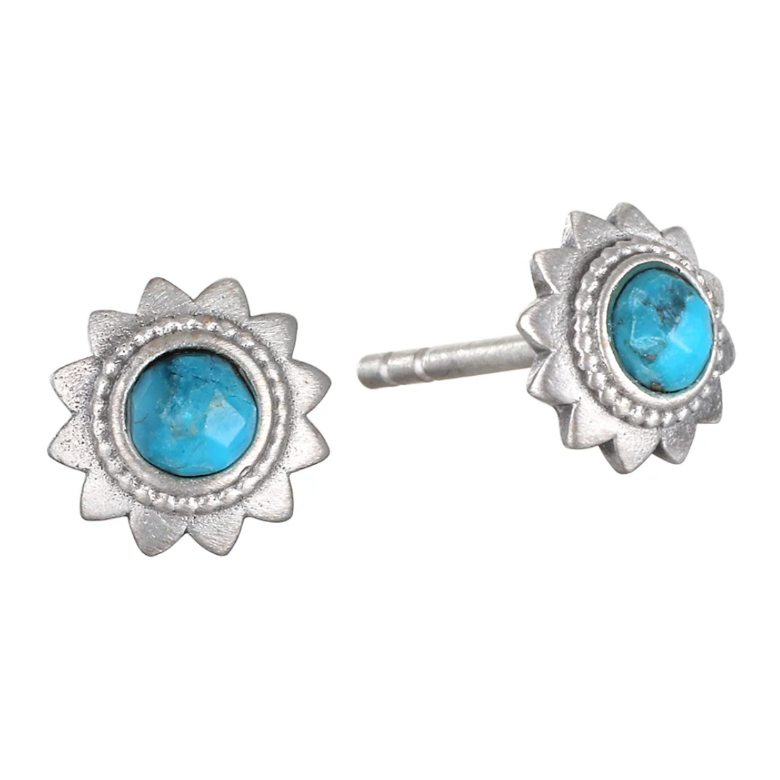 With nurturing, love, and light, we begin to bloom to our full potential. Sterling silver or gold plated stud earrings in the shape of a lotus flower—symbol of new beginnings and full potential—are accented with turquoise, stone of health, intuition, and self-expression.