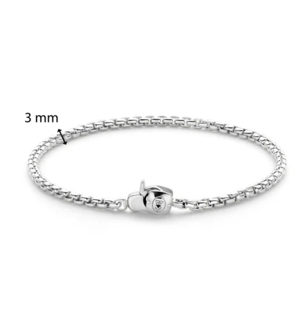 A simple bracelet by TI-SENTO Milano, perfect to wear with your other favorite pieces or rock it alone for a touch of shine! A 3mm Sterling Silver cable chain features a rounded lobster clasp. The piece is plated in platinum for maximum durability and shine!