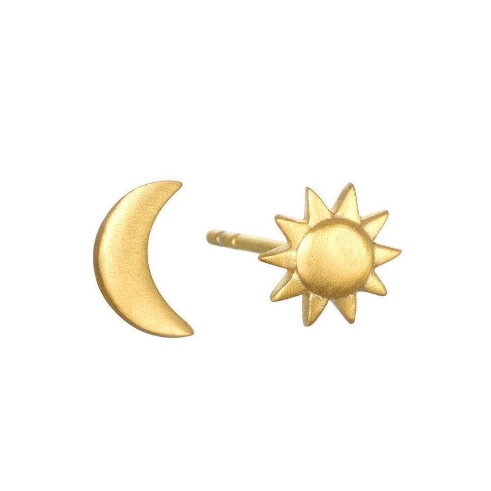 Call to mind the brilliant light of the sky each time you wear these sun and moon stud earrings. The sun—symbol of vitality—complements the goddess moon, creating a wearable and inspiring earring duo that can be worn alone or layered up the ear. You'll love this mismatched stud set!