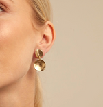 Double Gold Disc Drop Earrings