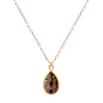 A Diamond necklace that will take your breath away! We see stunning red and brown hues in this gorgeous pear-cut faceted Diamond pendant by Margaret Solow. The stone is framed in 14k Yellow Gold and hangs from a classic cable chain with an adjustable length. Perfect for all day any day!