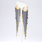 These earrings have been a staff favorite for YEARS! A small hinged hoop is adorned with 14k gold-filled wire wrapping. Multiple drops of Oxidized Sterling Silver chain taper in length, the longest in the center, across the base of the hoop. Each chain has a gold-filled bead at the base which keeps them from tangling and gives the piece a gorgeous mixed-metal flare! Your new go-to earrings!