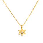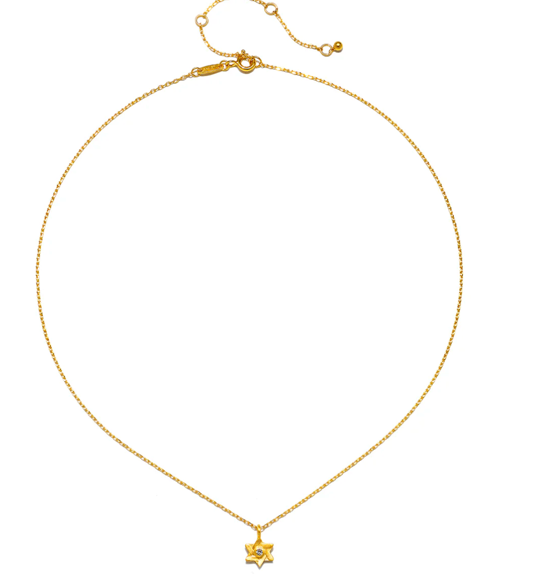 Let your faith guide you and uplift you; let it be a source of comfort and connection to that which you hold dear. An 18kt gold plate Star of David, symbol of Jewish identity and faith, is accented with a white topaz, offering healing energy and clarity as you journey to your highest truth.