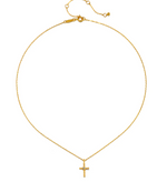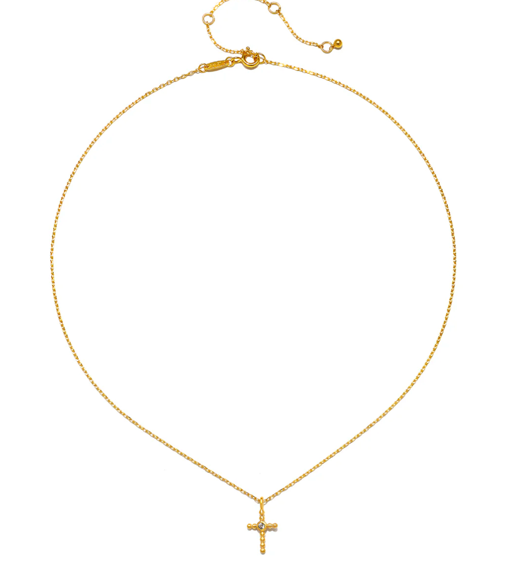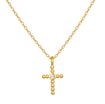 Your faith is precious and powerful, a source of infinite love and connection that guides your journey. An 18kt gold plate necklace is accented with a beaded cross, a symbol of faith and devotion. A brilliant white topaz stone shines from the center of the cross, offering its wearer clarity on their path to truth.