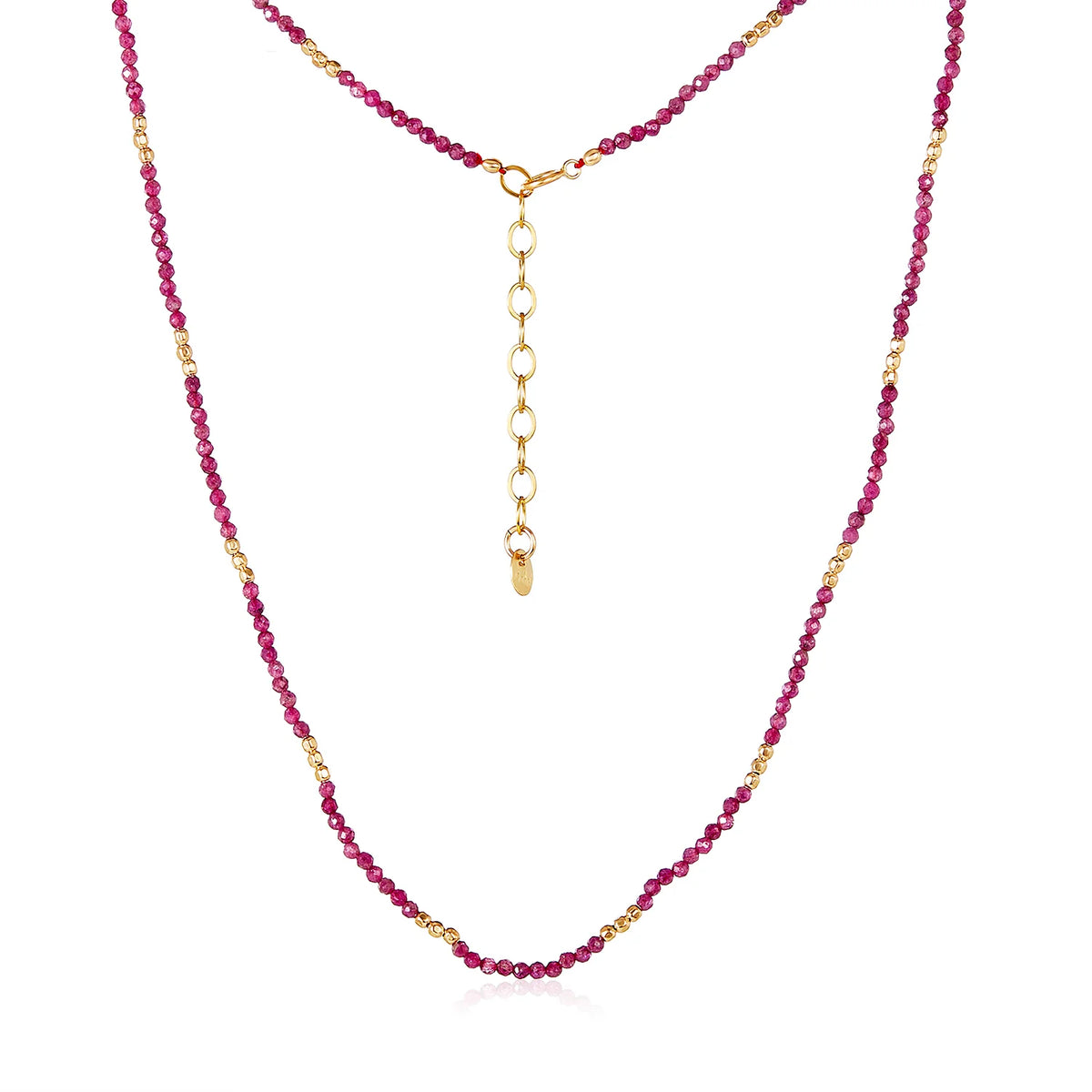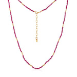 This Mabel Chong necklace is entirely crafted in round Ruby beads with stations of 3 gold-filled beads in stations spaced evenly throughout. The strand lays beautifully on the neck for a perfect touch of color!