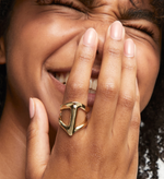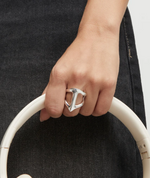 A unique ring that gorgeously utilizes negative space! Avialable in gold plated or silver plated metal, the ring is crafted in a manta ray shape with cut-outs on each side. Comfortable and bold!