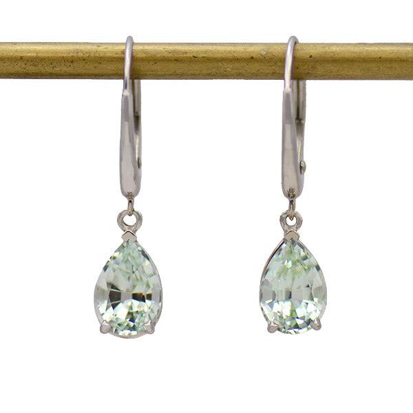 The gorgeous minty green of these one-of-a-kind Tourmaline Drops will take your breath away! Kristin Novinger designed these drop earrings each with a single pear-shaped mint Tourmaline that hangs, prong set, from 14k White Gold leverbacks. The stones move as you do, catching the light and showing off their unique color and sparkle!