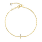 Sleek and sparkling by Lafonn! This bracelet features a minimalist paperclip chain accented by a dainty bezel-set cross. Understated yet symbolic, this piece blends quiet elegance with timeless faith. Set with Lafonn's signature Lassaire simulated diamonds in sterling silver plated with gold.