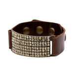 The perfect sparkling addition to any outfit! Rebel Designs created this bracelet in brown Italian Leather with an adjustable snap closure. The center of the bracelet features a rectangular shape of Antiqued Brass set with round Swarovski Crystals in a "black diamond" color. Gorgeous!