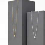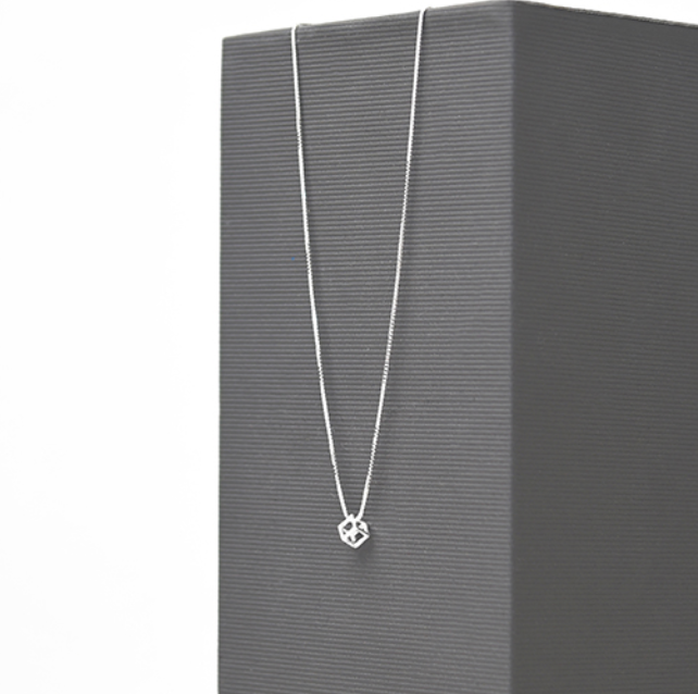 A dainty necklace perfect to wear with any outfit! A tiny open cube-shape hangs from a box-style chain. Available in either Sterling Silver or 18k Gold Plated over Sterling Silver. We love this as a simple necklace for yourself or a matching gift set!