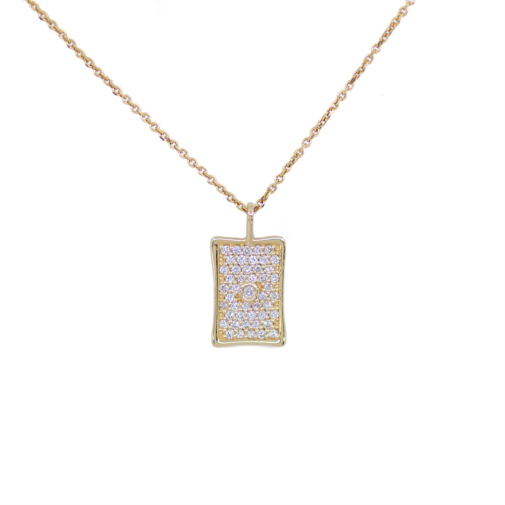 Rectangle Pave Diamond Necklace - Yellow Gold