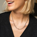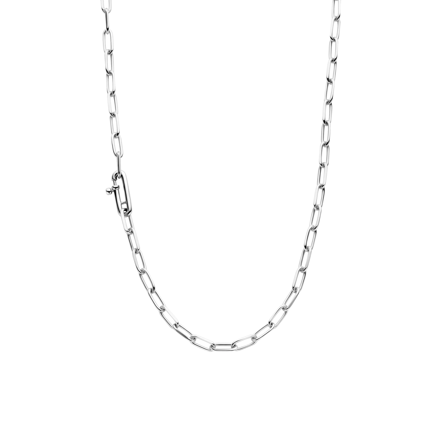 The trendy paperclip-style necklace is done perfectly by TI SENTO - Milano! A Sterling Silver necklace is made entirely of paperclip-style links that have been plated with Platinum for maximum durability and shine. With a unique and secure carabiner clasp, this is stunning alone or layered with other necklaces!
