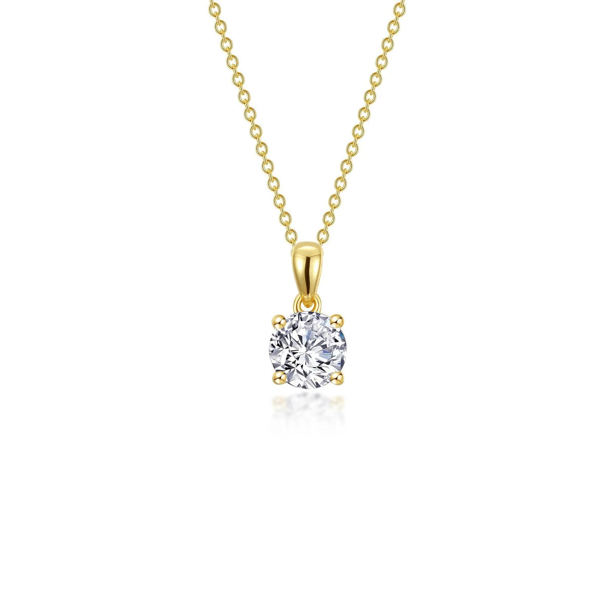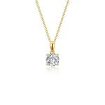A timeless classic! This solitaire pendant necklace is set with a Lafonn's signature Lassaire simulated diamond in sterling silver using Lafonn's exclusive TR Gold, a new and improved plating process that preserves the rich color of gold and enhances the wearability of our gold-plated styles. The pendant has a classic tapered bail and an adjustable chain.