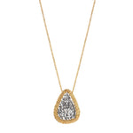 A piece that really shows off the wire-wrapping skills Dana Kellin is known for! Sparkling platinum-colored crystal beads make up the pear-shaped pendant that features a frame of gold-filled wire wrapping. The pendant is attached to a gold-filled chain that completes the piece beautifully!