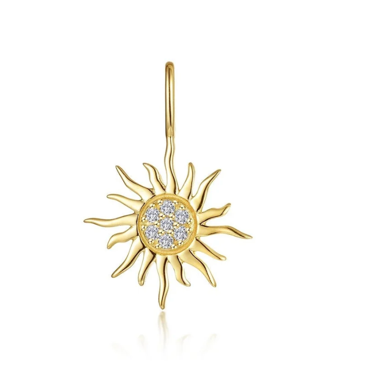 A sparkling piece perfect to wear as a pendant on a chain or add to your favorite charm bracelet! A yellow gold plated sterling silver sun shape adorned with Lafonn's signature simulated round diamonds in the center with a classic oval bail.