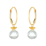 Round white topaz stones with stunning facets are the star of these Mabel Chong earrings! Each has a single white topaz drop that is accented by a small 14k yellow gold filled flat bead on top and hangs from a classic leverback for secure, all-day wear! You'll love how these catch the light with each movement!