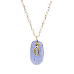 Hello, unique beauty! Margaret Solow designed this necklace with a stunning oval-shaped Tanzanite stone that is drilled at the top to allow the bail to sit directly through the stone. Hanging in front of the Tanzanite is an oval Diamond framed in 18k Yellow Gold, allowing the unique color of the Tanzanite to shine through! An adjustable cable chain finishes off the necklace perfectly.