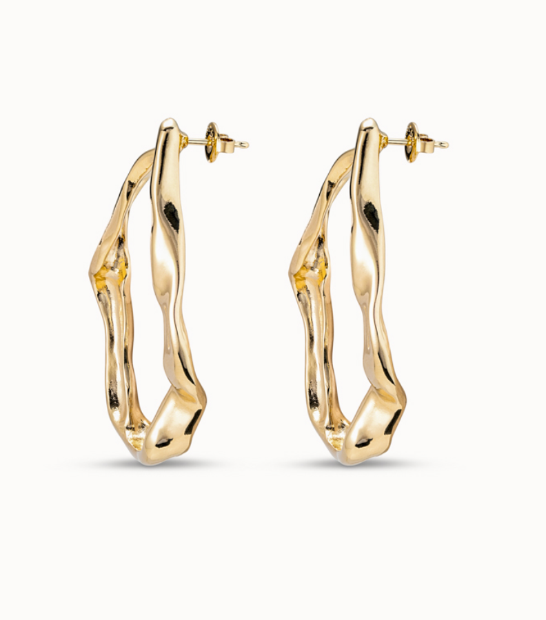 Big, bold earrings by Uno De 50! These gold-plated metal earrings feature post backings with large, organic, open teardrop-shaped drops. They're sure to make a statement! 100% handmade in Spain by Uno De 50