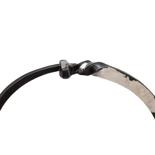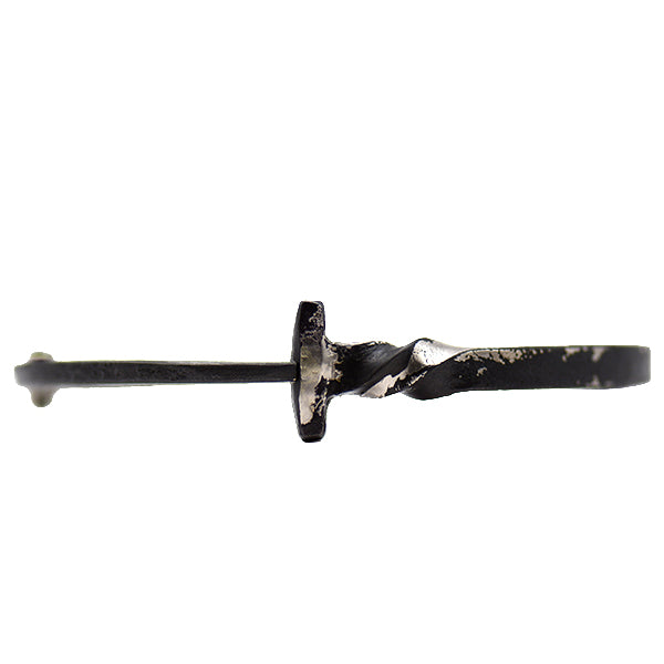 Another fabulous nail bracelet by Pat Flynn! This blackened iron nail is hand forged and is accented with 22K White Gold along a "twist" towards the top of the nail. It opens with a hand-crafted hidden closure and 18K White Gold hinge.