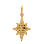 A unique Erica Molinari charm with the perfect sparkle! A small 18k yellow gold star charm is adorned with hand-engraved detailing and is set in the center with a single, natural baguette diamond. The backside of the chain is a hand-painted black enamel phrase that translates to "I love my life." A piece so stunning it will make your jaw drop!