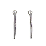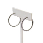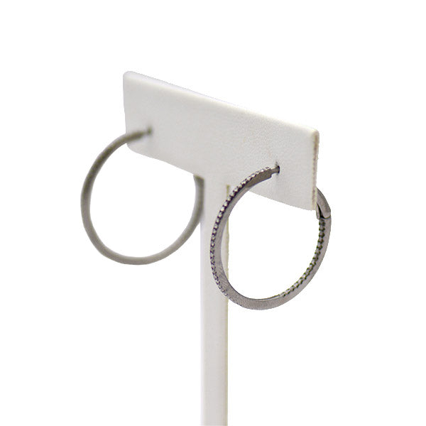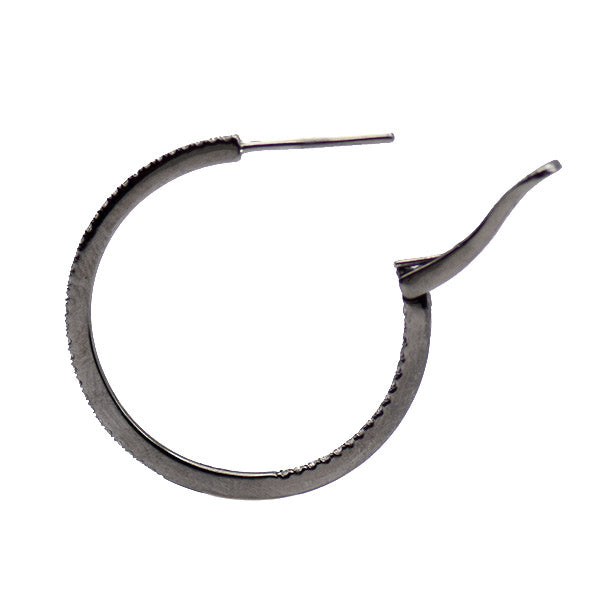 These diamond hoops by Dilamani give us an edgy sparkle we LOVE! 14k White Gold hoops feature a blackened finish that contrasts the white diamonds beautifully. The hoops are crafted with an "inside-out" design, meaning round diamonds are set along the front of the hoop and the front-facing interior. A hinged backing allows for comfortable, secure wear all day long!