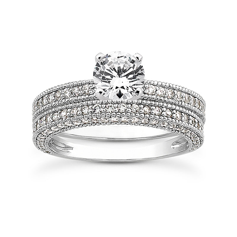 These rings are made to order! Time frame to make the piece usually takes between 2-4 weeks depending on availability. The rings are able to come in any metal/metal combination you'd like and with any stone size, color, quality, or shape you're interested in. Please contact us or stop in for more information on these and other settings!