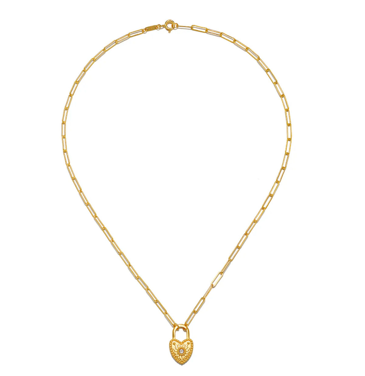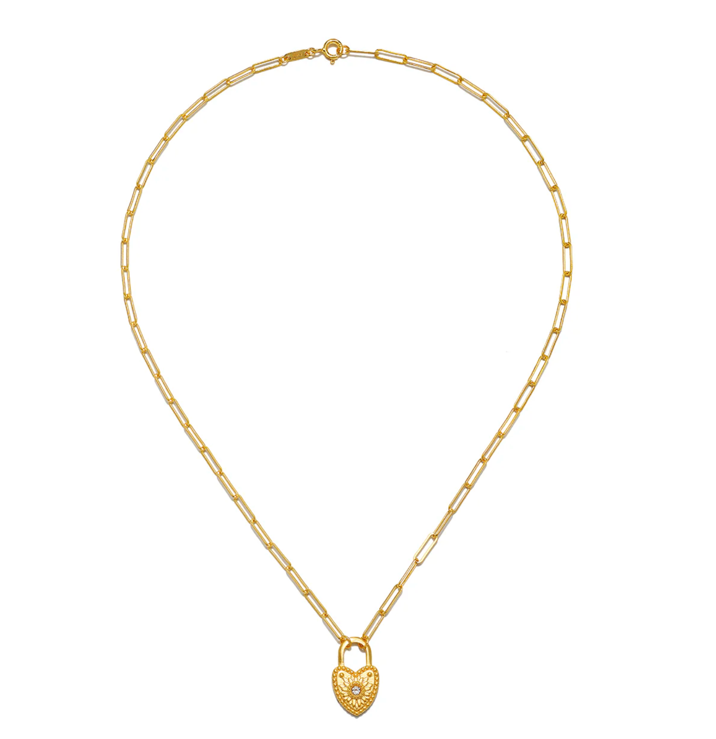The heart is unlocked by love, a symbol of perpetual devotion. Shining with white topaz, stone of clarity and intution, this heart-shaped charm invites you to manifest the power of love into your life. Wear the padlock heart to remind you that love surrounds you in abundance.