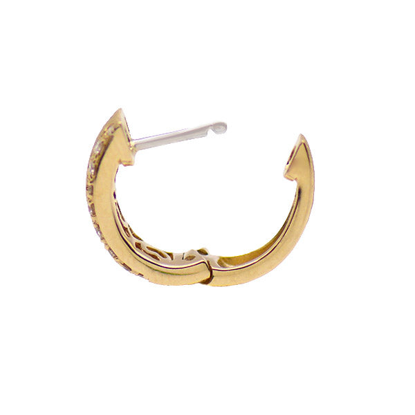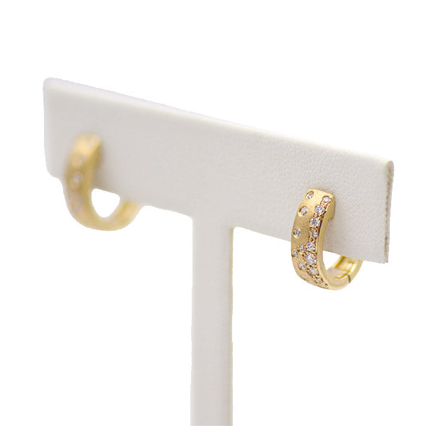 One of our favorite pairs of hoops! Each 14k Yellow Gold earring features round white diamonds flush set in a scattered pattern that Dilamani refers to as their "confetti" collection. Finished off with a satin finish that brings a unique softness, these are the perfect addition to any outfit!