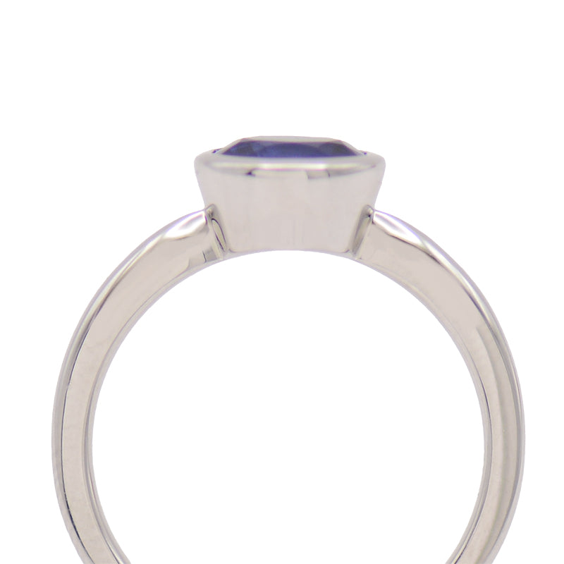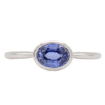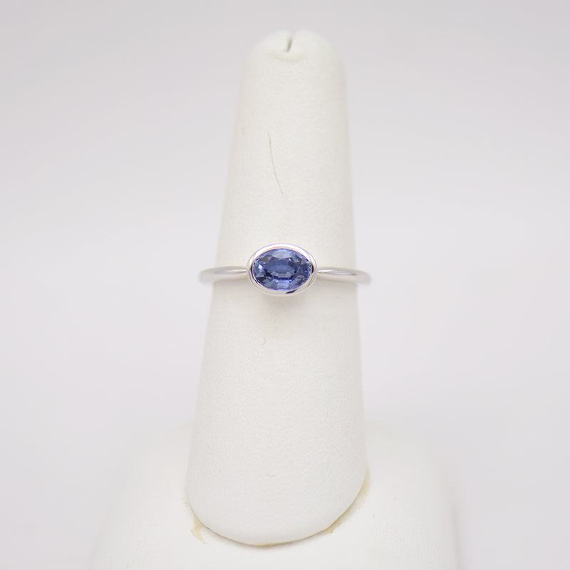 One-of-a-kind by Kristin Novinger with a blue that'll take your breath away! This 14k White Gold ring is designed with an oval-shaped Ceylon Sapphire set east/west in a classic raised bezel. The bezel-set stone is in the center of a low-dome band with a pinched design that tapers at the bezel, bringing all your attention to the Sapphire!