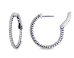 Fun and elegant. These inside out hoop earrings are set with Lafonn's signature Lassaire simulated diamonds in Sterling Silver bonded with Platinum. You'll find Cubic Zirconia stones set not only along the front of the earring but the interior of the back as well! You'll fall in love with all this sparkle!