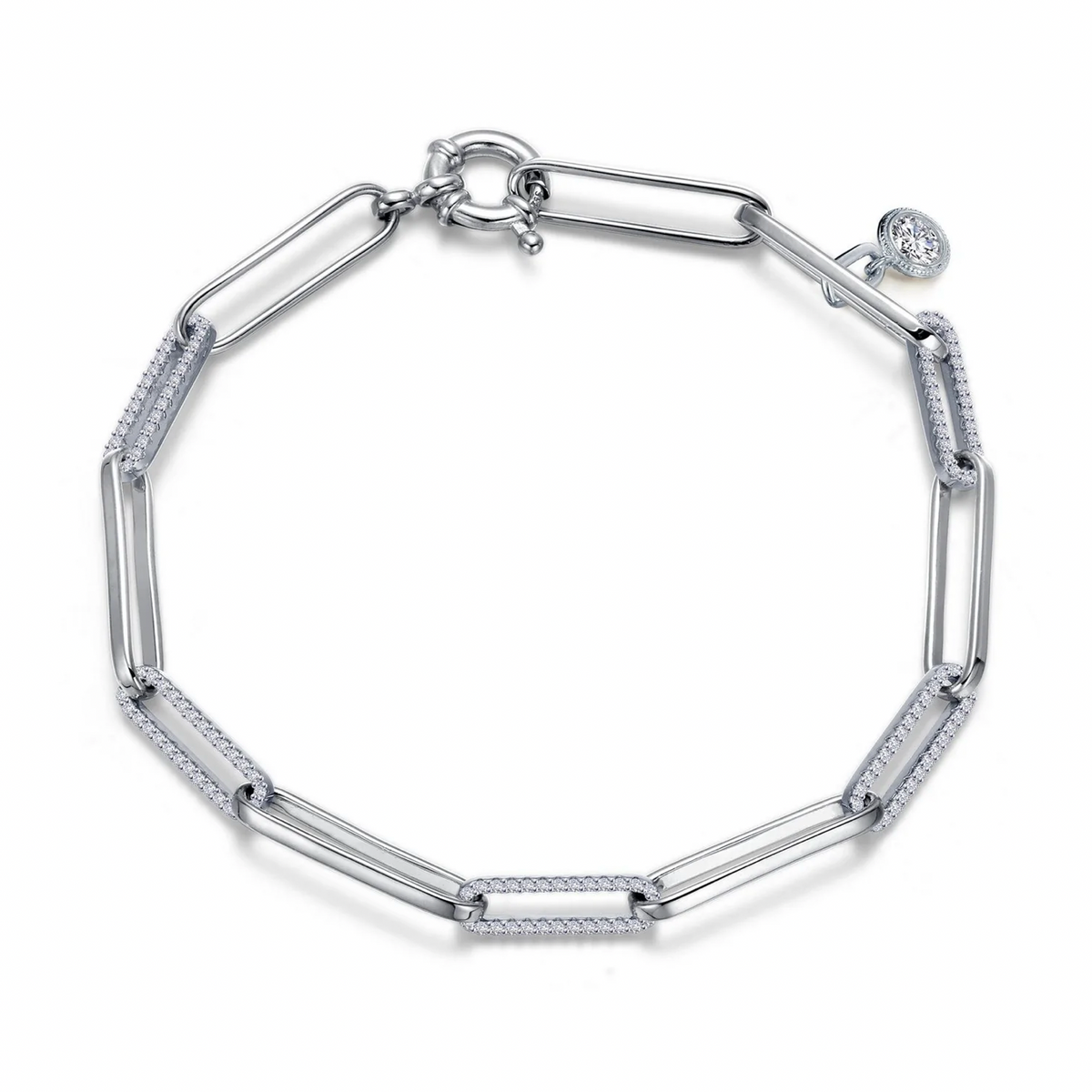Trendy and playful, this adorable paperclip bracelet by Lafonn is a new favorite! The bracelet is set with Lafonn's signature Lassaire simulated diamonds in Sterling Silver bonded with platinum. The links are placed in an alternating pattern around the entire piece. Love it!