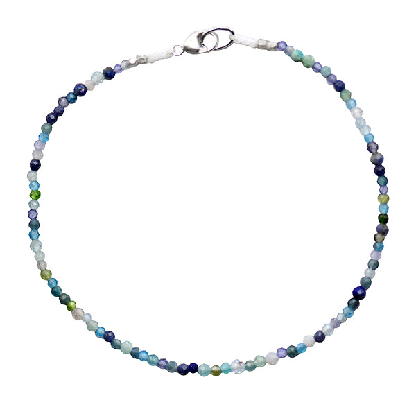 This Margaret Solow bracelet is hand-strung with various blue & green gemstone beads across the entire piece. Finished off with a Sterling Silver lobster clasp for secure, all day wear...you'll love it! The perfect gift for yourself or a loved one!