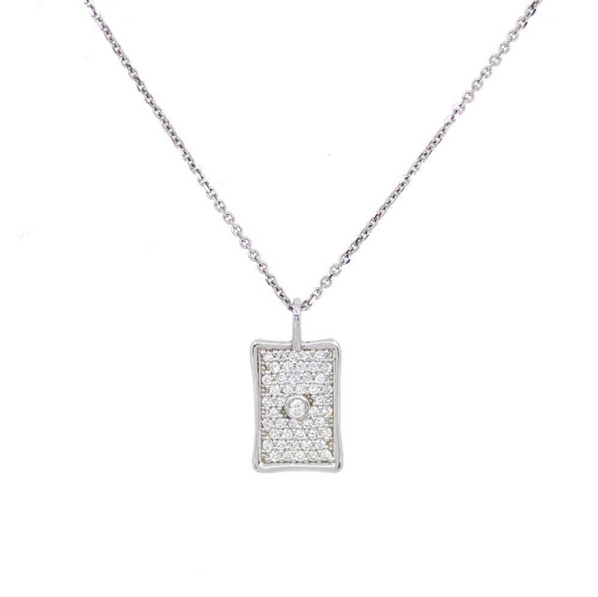 Rectangle Pave Diamond Necklace - Yellow or White Gold