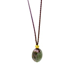 This dainty Margaret Solow pendant is the perfect one-of-a-kind piece to wear every day! A unique Watermelon Tourmlaine oval, smooth cabochon stone is drilled to hang directly on Margaret's signature brown Nylon Cord. The stone is accented by an 18k Yellow Gold bead directly above it, drawing your eye in with a touch of shine! The green with a POP of pink makes this one of our favorite Tourmalines!