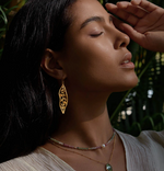 Beauty expands as we open our eyes and hearts to its transformative presence. Delicate, open-work 18kt gold plated earrings shine with lotus flowers expanding into full bloom, symbolizing new beginnings and full potential—meaningful talismans of transformation.