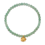The perfect bracelet from Satya to add to your stack! A stretch bracelet of green aventurine, stone of balance and creativity, is adorned with a gold lotus charm, a symbol of new beginnings and full potential. Let inspiration guide your spirit to soar to its full potential.