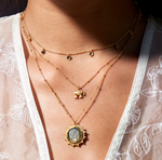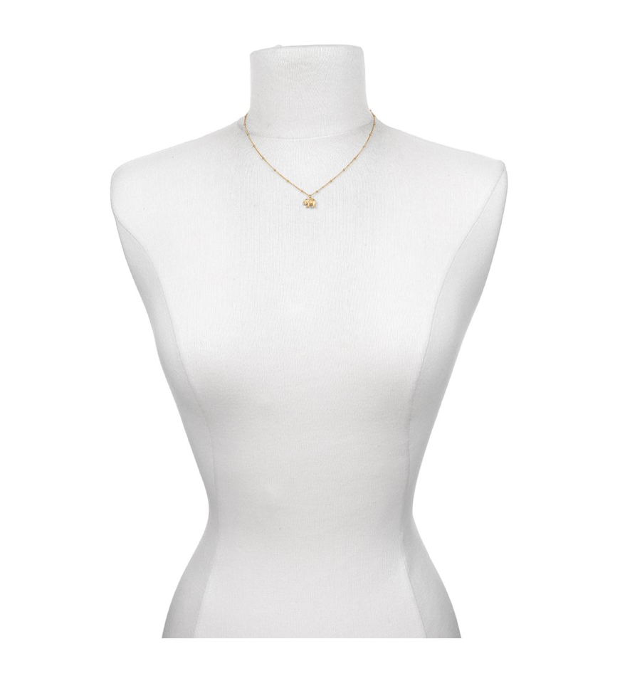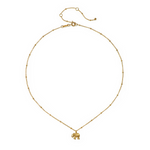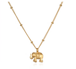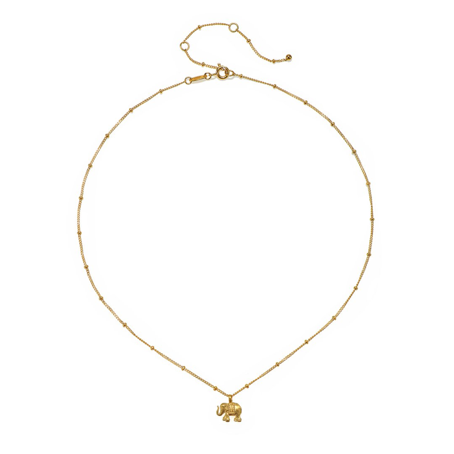 With gentle grace, we stand in strength for what we are called to uphold. From an 18k gold plate beaded necklace, an elephant pendant radiates its wisdom, strength and good fortune out into the world. Wear this Satya piece with any outfit for a perfect reminder!