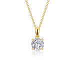 A timeless classic! This solitaire pendant necklace is set with a Lafonn's signature Lassaire simulated diamond in sterling silver using Lafonn's exclusive TR Gold, a new and improved plating process that preserves the rich color of gold and enhances the wearability of our gold-plated styles. The pendant has a classic tapered bail and an adjustable chain with another stone accent!